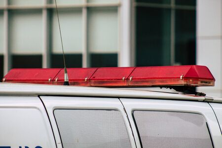Limassol Cyprus June 11, 2020 View of a traditional Cypriot ambulance rolling in the streets of Limassol in Cyprus island