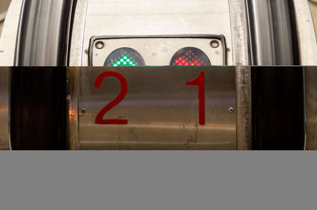 close up of the direction indicator of the escalator