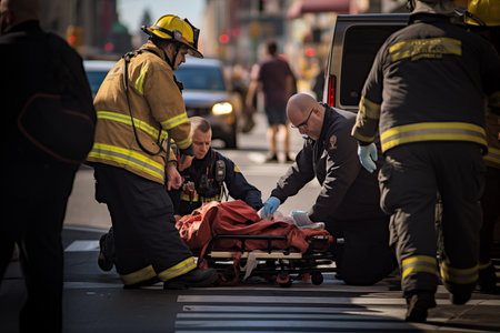 A traffic accident scene with emergency responders and vehicles, highlighting the importance of road safety and quick response.