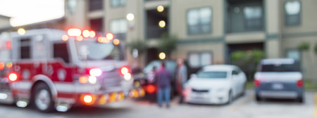 Panoramic view blurry background fire disaster event at apartment complex in America