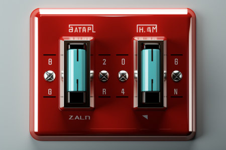 A close up of a set of switches on an electrical panel, AI