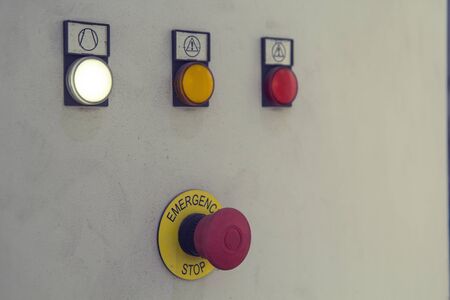 emergency stop button switch on control panel In a industry