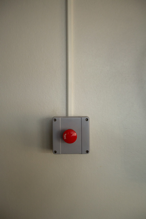 Emergency Stop Button fire warning alarm on wall