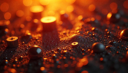 Abstract Macro Shot of Fasteners on Metallic Granular Surface