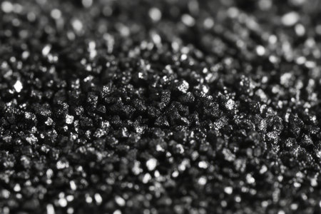 Close-up of black volcanic sand, fine grains with a smooth, matte finish.