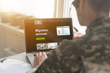 Military, laptop with migration service.