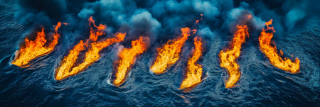 Fire burning on water surface creating abstract shapes
