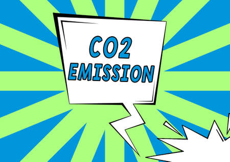 Handwriting text Co2 Emission. Concept meaning Releasing of greenhouse gases into the atmosphere over time Blank Thunderstorm Speech Bubble With Copy Space For Branding.