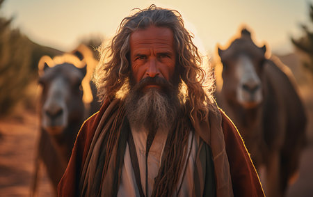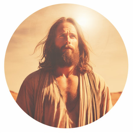 jesus standing in the desert with a beard