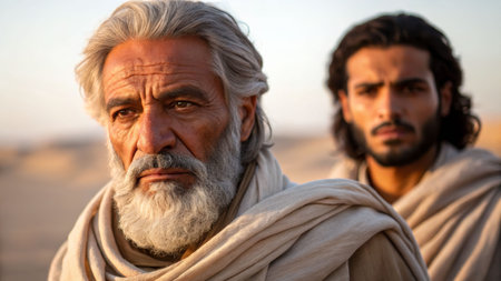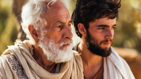 biblical religious theme. Portrait of old man and young man