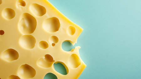 A tempting close-up of Swiss cheese shows its texture and holes against a plain backdrop Perfect for recipes and food content.