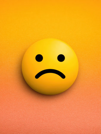 A sad emoji is displayed in the center against a brightly colored background with a broken user interface. The upper margin fades to a lighter hue.