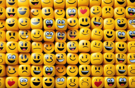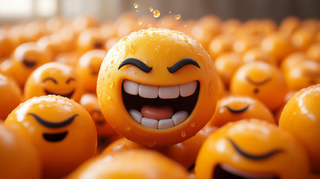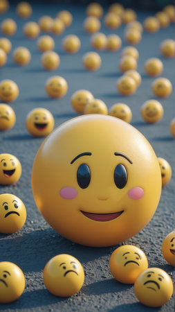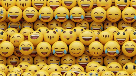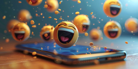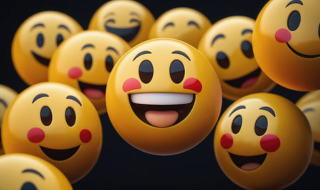 A group of happy emojis float in the air, radiating positivity