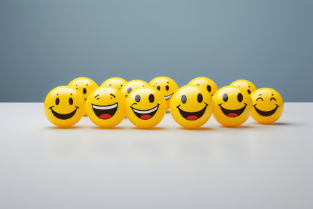A vibrant display of ten balls featuring different smiley faces representing emotions.