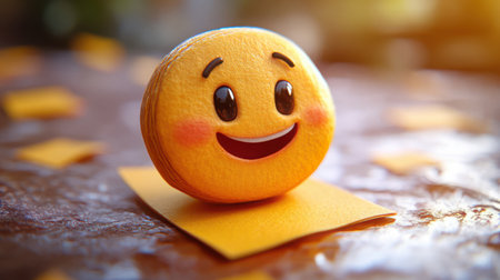 Close-up of sticky-note emoji with textured paper surface visible, warm lighting enhancing dimensional appearance