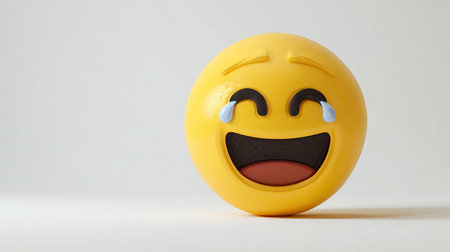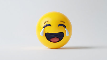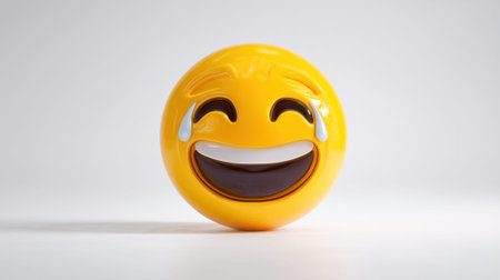 3d of a laughing emoji with closed eyes, showing teeth, on white background, representing joy and happiness