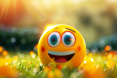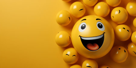 Cheerful 3D of yellow smile balls, cute and happy, with a lively background.