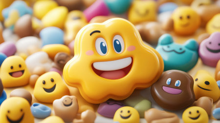 A vibrant group of 3D emoji faces exhibiting a range of emotions. generate AI