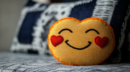 fabric cushion with emoji face in color background.