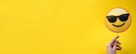 Emotion stickers mood isolated on bright vivid sine vibrant yellow color background. Emoji Party Holiday Attributes for a photo shoot.