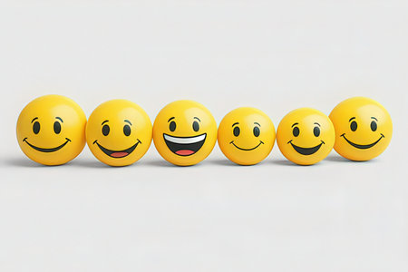 A vibrant collection of cheerful smiley emojis radiating joy and happiness. Perfect for design projects that aim to express positivity and fun.