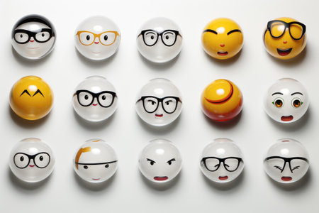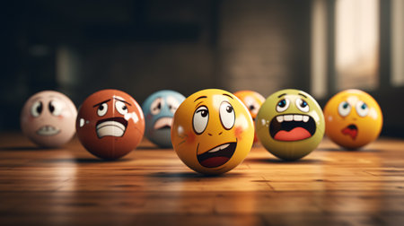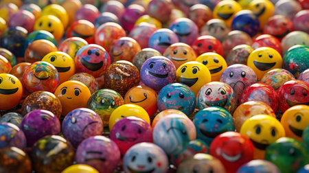 A collection of colorful emoji balls featuring diverse facial expressions, perfect for projects requiring playful and expressive imagery. Ideal for creative usage.