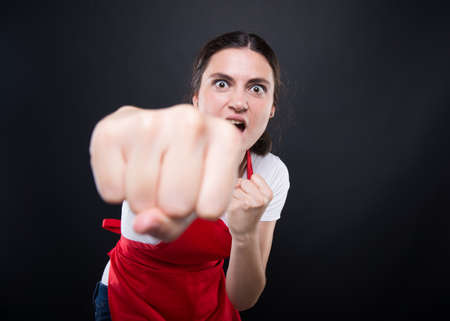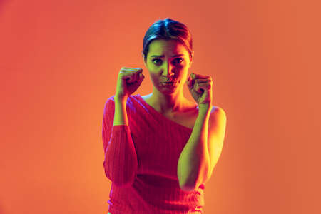 Aggression – portrait of an angry aggressive woman with clenched fists