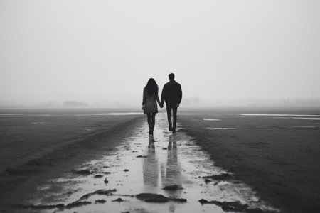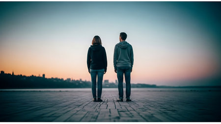 couple silhouette at dusk, generative ai