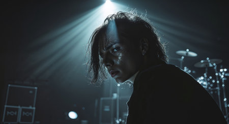 AI Generated. Capturing a live performance studio dark lighting backstage perspective