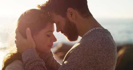 Close up of Couple look Each Other At Sunset