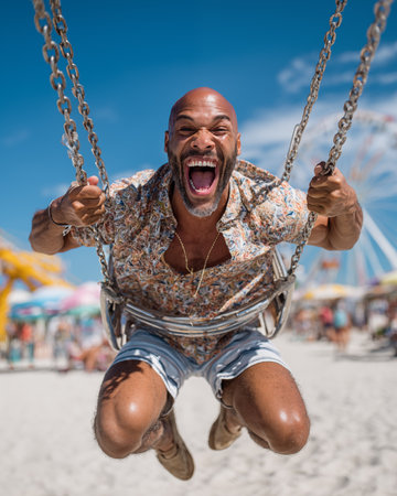 A person swings on a swing set soaring through the air with abandon created with Generative AI