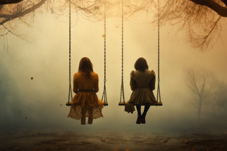Capturing Serenity: An Intimate Moment of Two Women on a Swing Bench, in AR 3:2