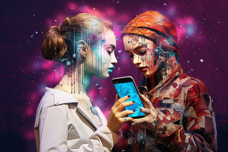 Love in the Digital Age: Embracing Modern Art in a Collage of Digital Pop Surrealism