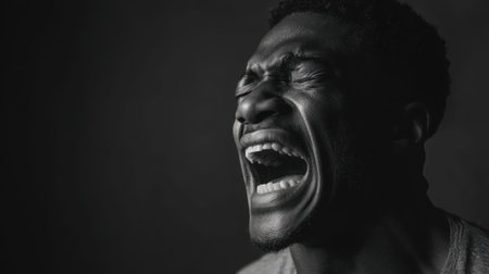 Expressive emotional african male portrait in black and white close-up.
