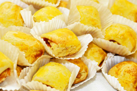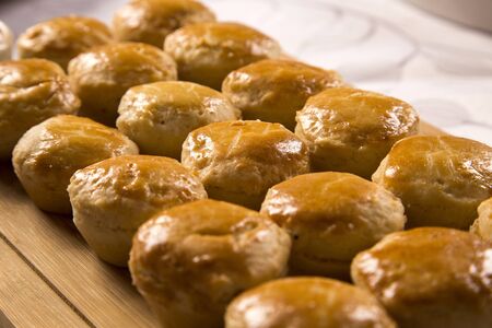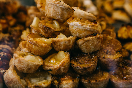Empada Brazilian snack. several delicious pie with chicken lined up