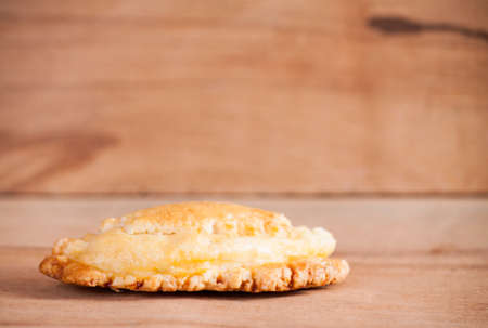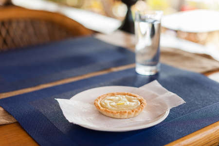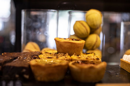 Close-up of Pastel de nata (Portuguese: pasteis de nata), a famous Portuguese egg custard tart pastry