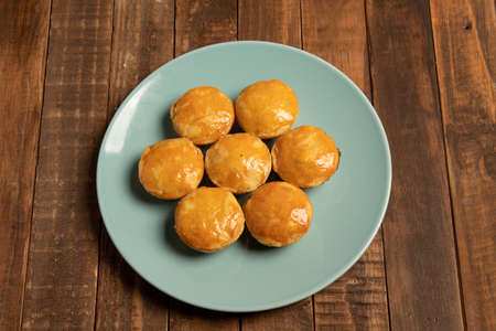Empada or empadinha is a very popular and traditional snack of Brazilian cuisine, it is a small savory pie stuffed with chicken or shrimp. Top view