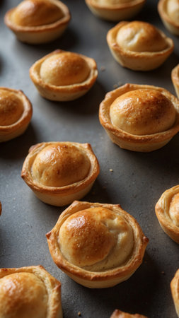 AI Generated. Rustic Meat Pies Close Up in High Contrast Setting