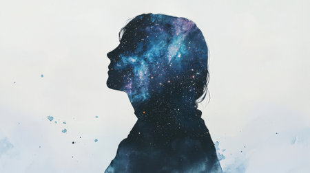 A profile of an individual filled with a vibrant starry galaxy, symbolizing dreams and introspection. The artwork evokes a sense of wonder and exploration of the cosmos.
