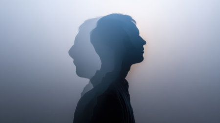 A human silhouette emerges from swirling fog, capturing the essence of identity loss and fading self-assurance in a quiet setting.