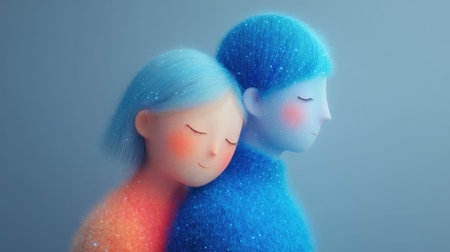 Abstract representation of two human figures in warm and cool colors, symbolizing emotional connection and duality in art