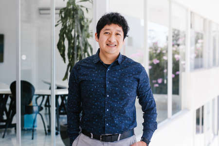A handsome young Hispanic man with a warm, genuine smile looks directly into the camera.