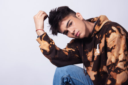 Fashionable Filipino male posing in a floral shirt with urban graffiti background