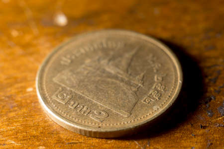 Thai Coin on wooden background.