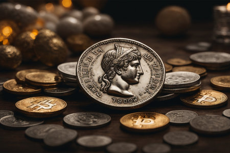 illustration of roman denarius in cryptocurrency concept