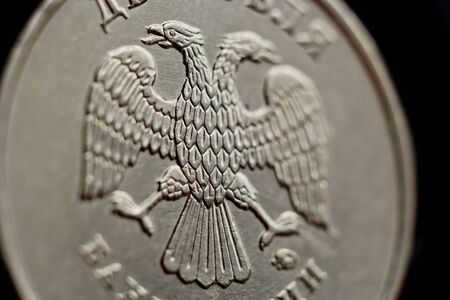 Close-up of russian ruble coins. Shallow depth of field