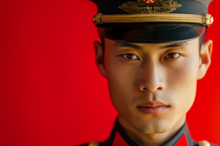 Authoritative Asian police officer portrait. Law team. Generate Ai