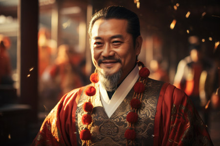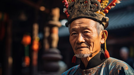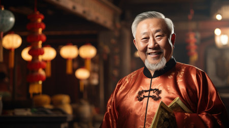 Portrait of a Chinese man in traditional costume during Chinese New Year