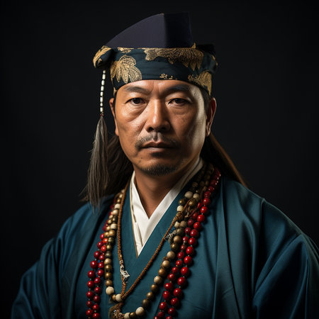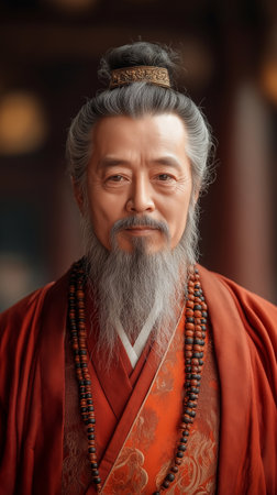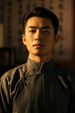Portrait of a man in traditional Chinese costume, close-up