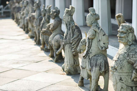 Statues at Luoyang Bridge, Quanzhou, China. The Luoyang Bridge, known as Wan'an Bridge, is the first stone bay bridge in China, started from the 1053, Song Dynasty